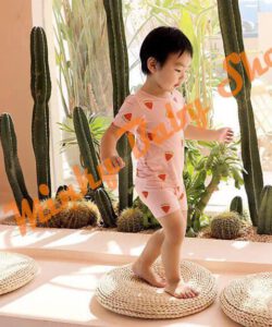 Chất liệu sản phẩm 100% cotton mặc mát lạnh, co dãn thoải mái để bé tha hồ vận động, khám phá thế giới